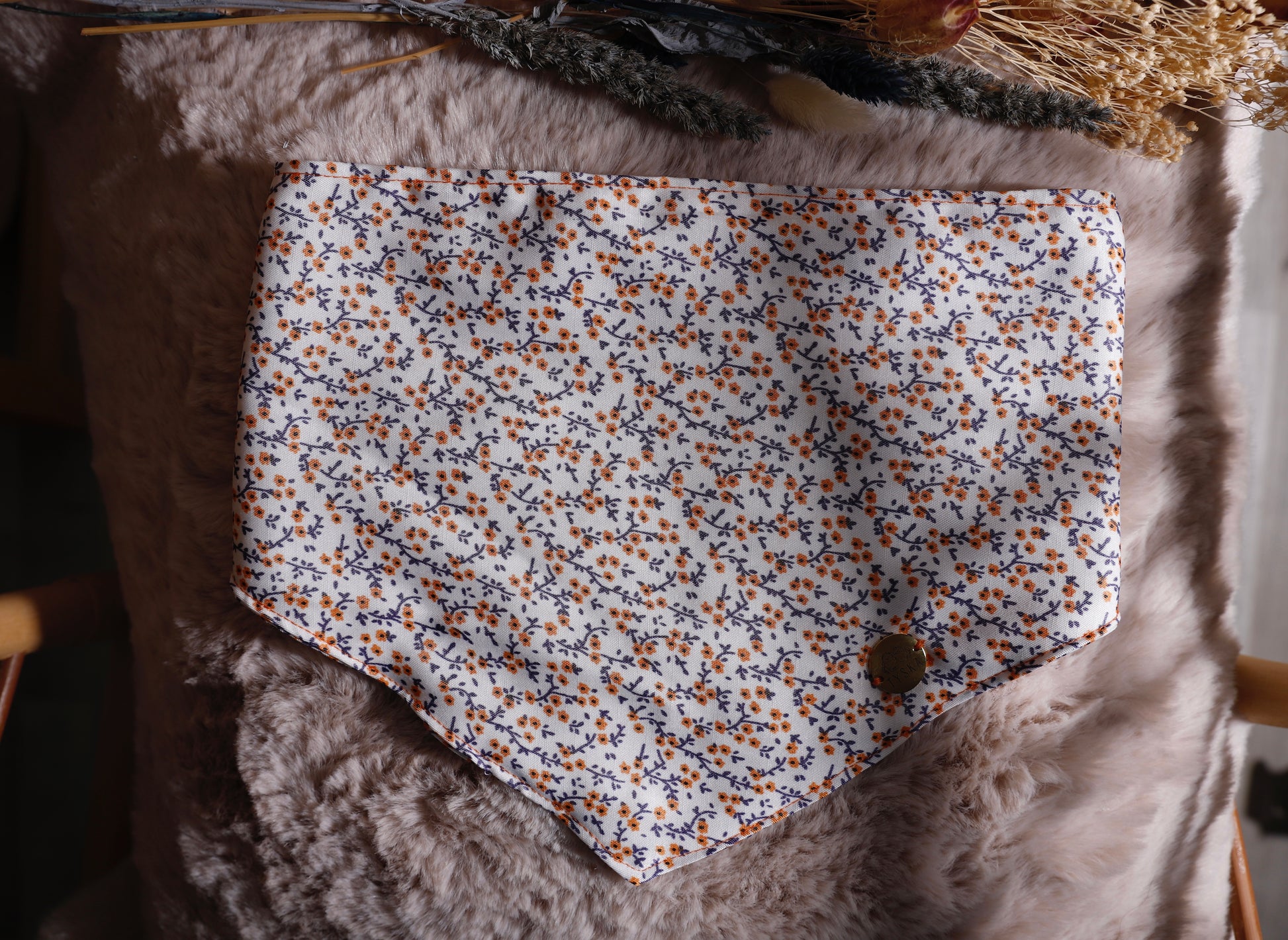Avec ses jolies petites fleurs orange, ce bandana sera parfait pour les beaux jours !