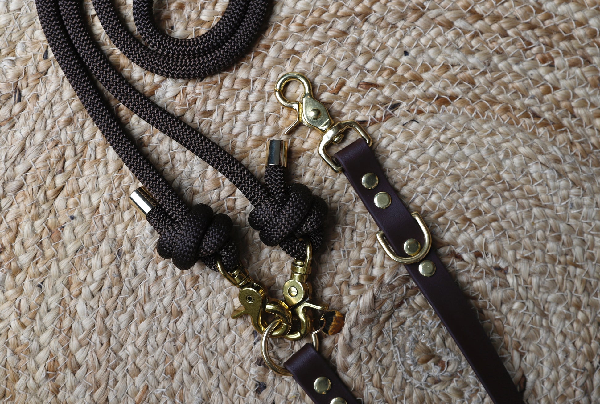 Laisse multiposition 3 points marron foncé