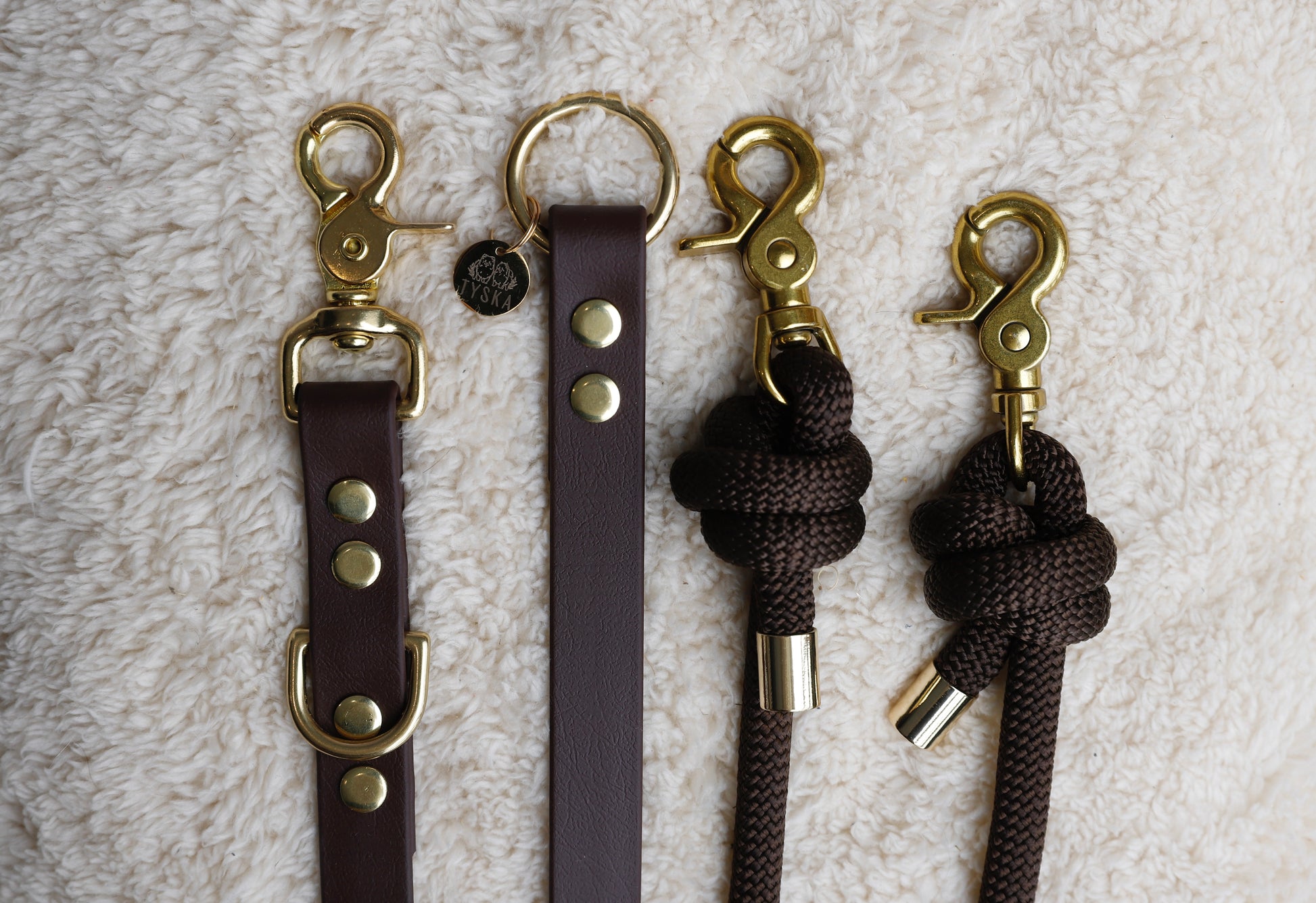 Pour l’entretien de votre laisse, lavez simplement avec de l’eau et une éponge savonneuse, puis séchez le avec une serviette. La bouclerie en laiton massif peut ternir et s’oxyder avec le temps.