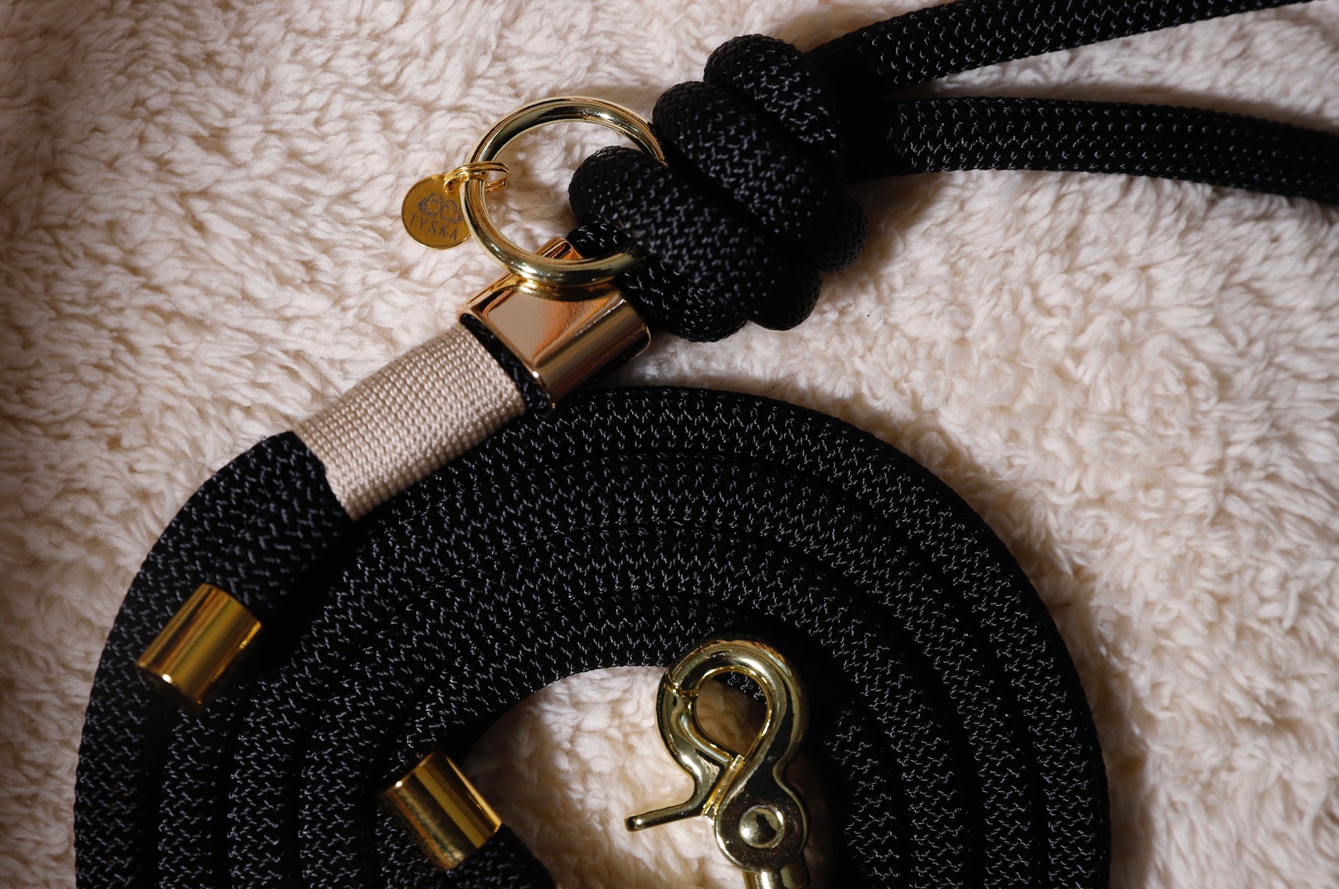 Cette laisse est faite en corde simple de 150 cm, 180 cm ou en multiposition main libre avec noeud coulissant jusqu’à 270 cm. Entretien : Le lavage à la main avec eau et savon est fortement recommandé. Pas de sèche-linge.