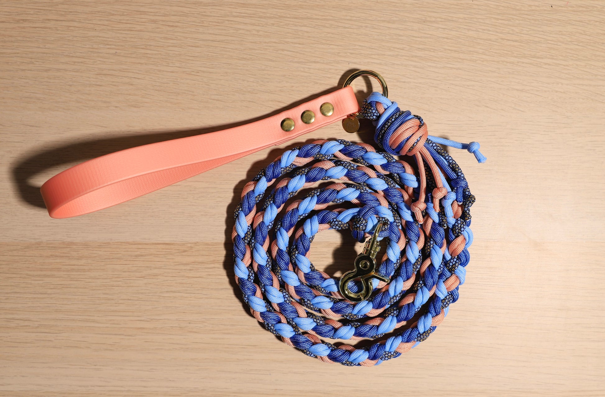Cette laisse de chez TYSKA tressée en paracorde et sa poignée en biothane, de 190 cm. Entretien : Le lavage à la main est fortement recommandé. Pas de sèche-linge.