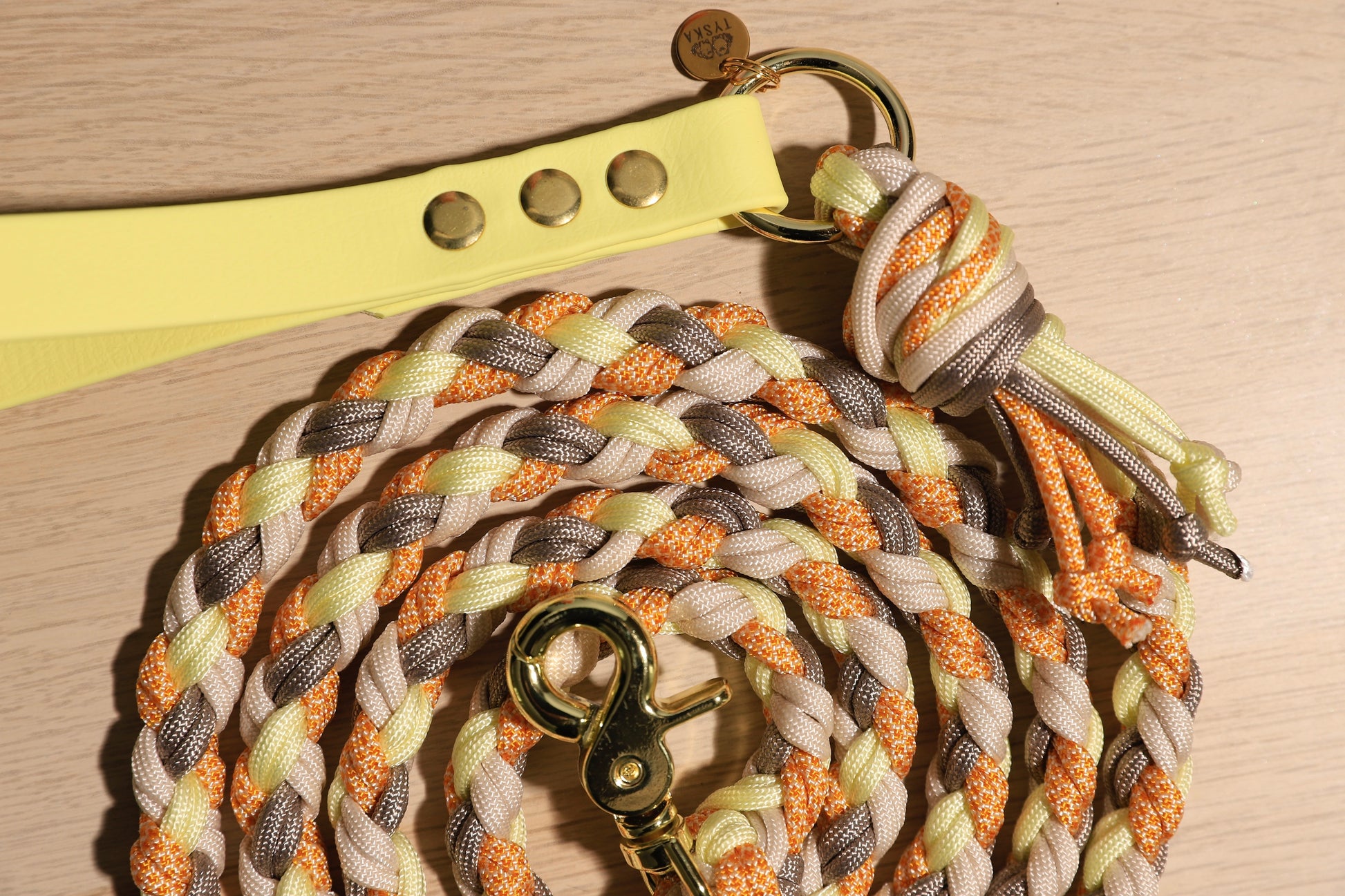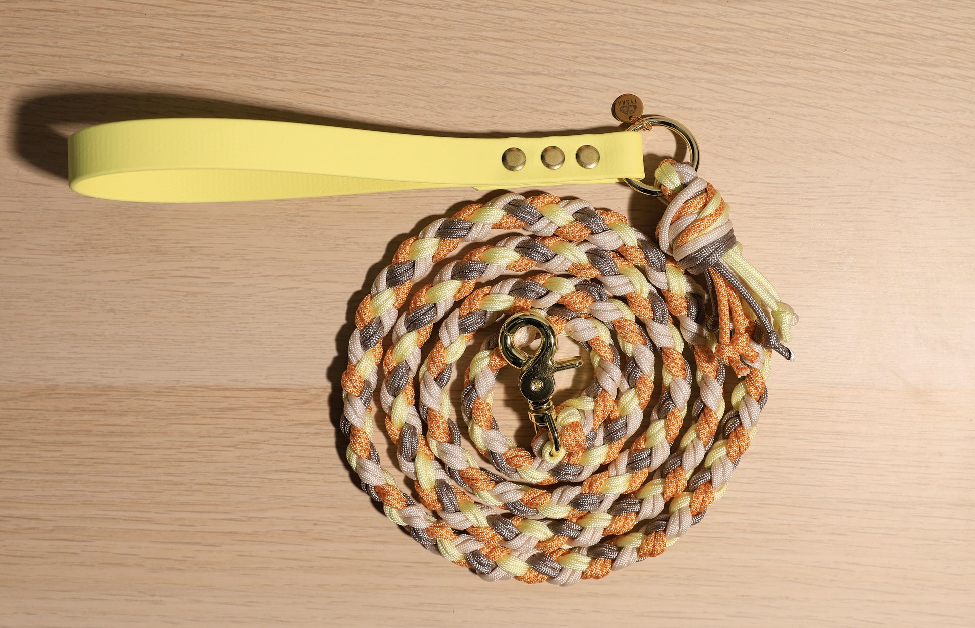 Cette laisse de chez TYSKA tressée en paracorde et sa poignée en biothane, de 190 cm. Entretien : Le lavage à la main est fortement recommandé. Pas de sèche-linge.