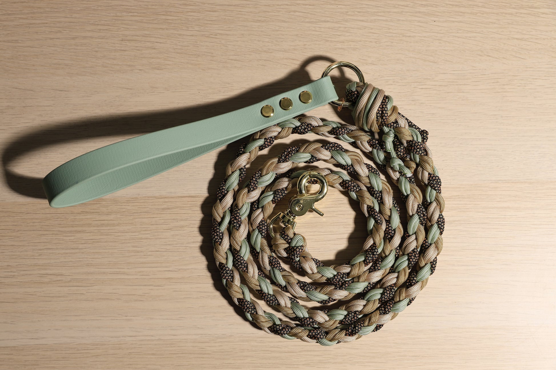 Cette laisse de chez TYSKA tressée en paracorde et sa poignée en biothane, de 180 cm. Entretien : Le lavage à la main est fortement recommandé. Pas de sèche-linge.