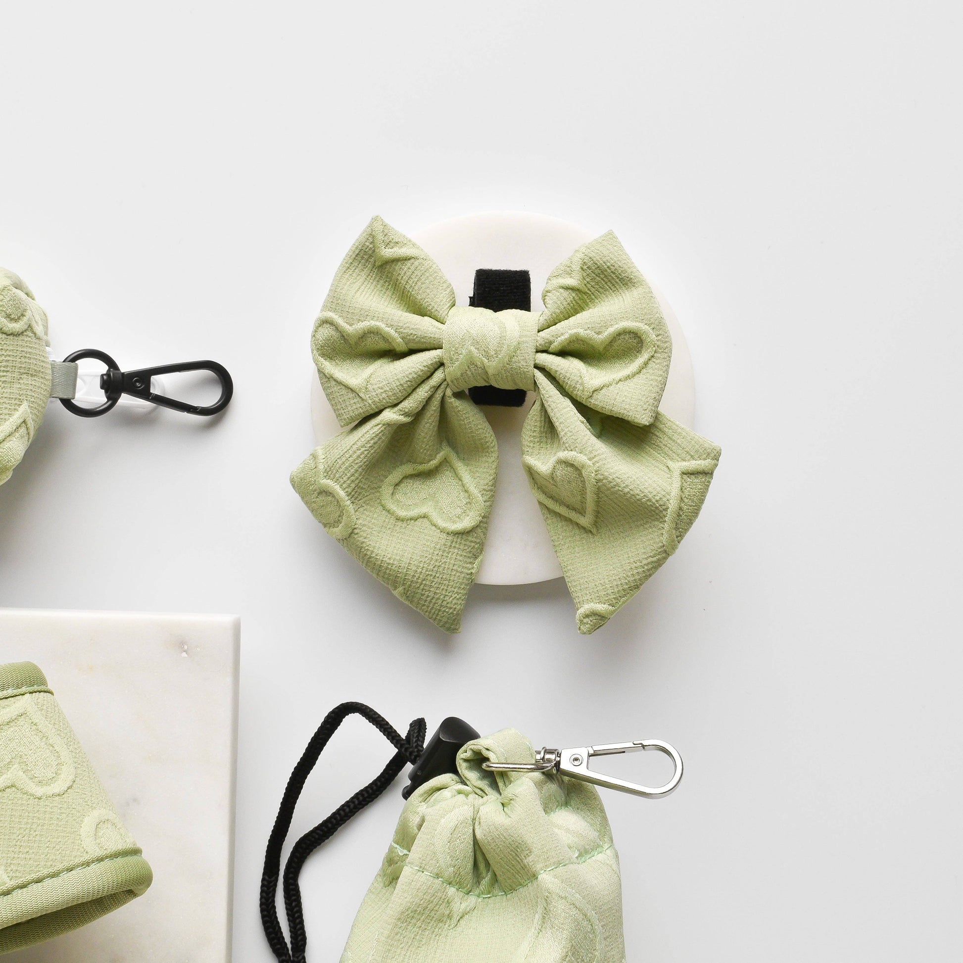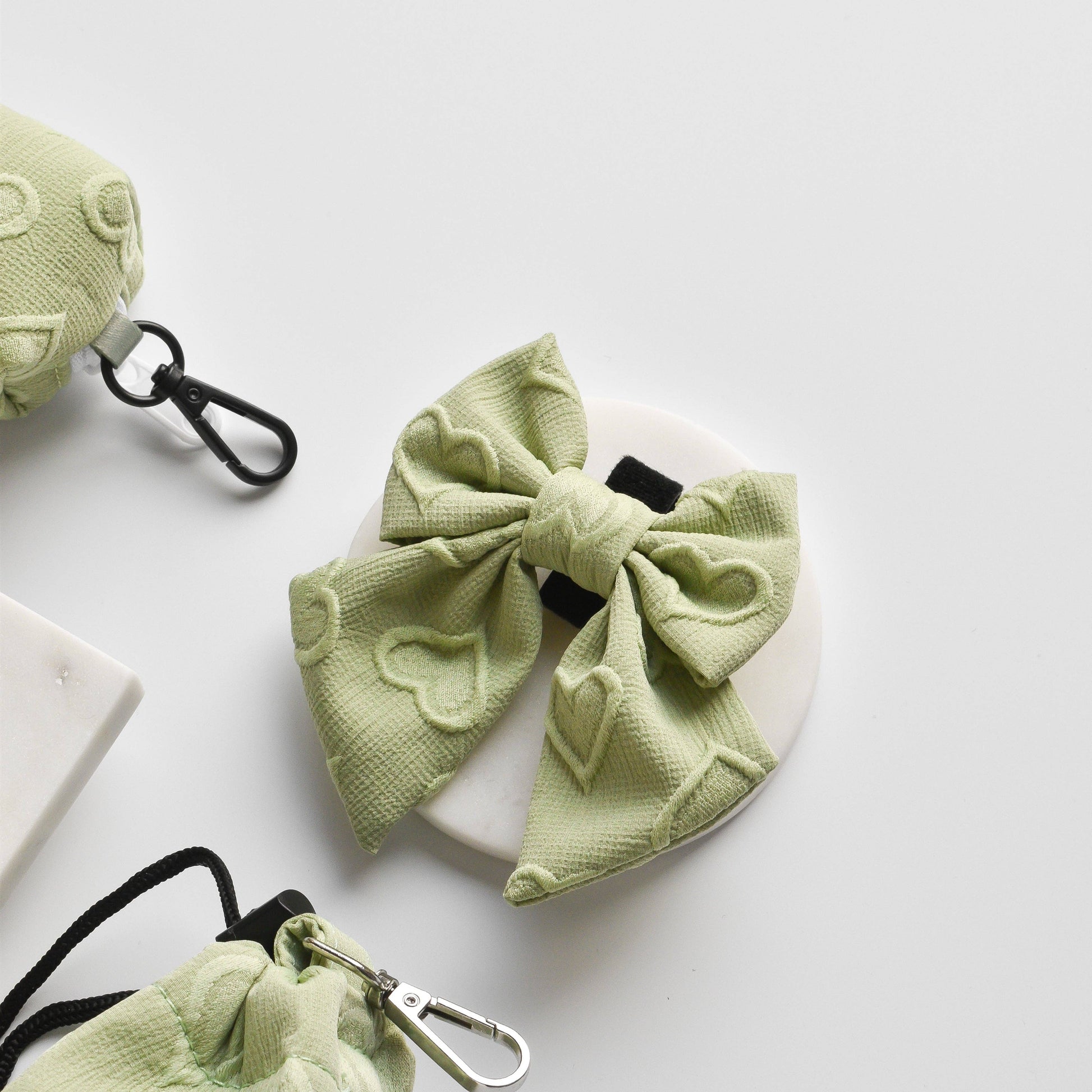 Ce nœud papillon Sailor de luxe séduit les cœurs grâce à son élégant motif en forme de cœur en vert sauge apaisant. En matière de mode, votre chiot sera au top !