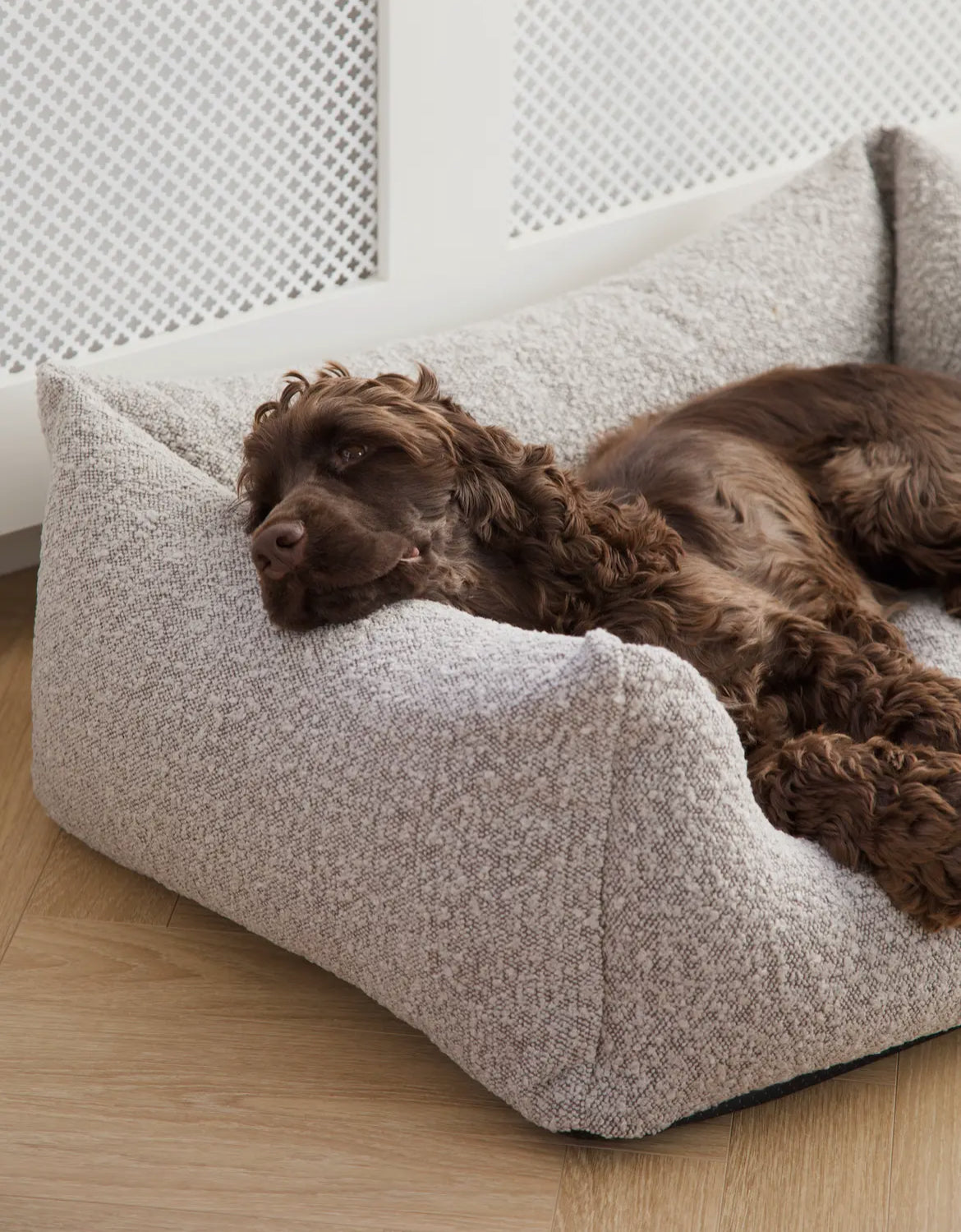 Fabriqué avec soin avec le tissu bouclé le plus doux, ce lit exclusif pour chien embrasse le corps de votre chien comme un câlin chaleureux. Avec son design unique et son souci du détail, Billy offre un mélange distinctif de style et de fonctionnalité. Notre engagement à créer ce qu'il y a de mieux pour votre chien se reflète dans chaque point et chaque fil qui entrent dans la fabrication de Billy.