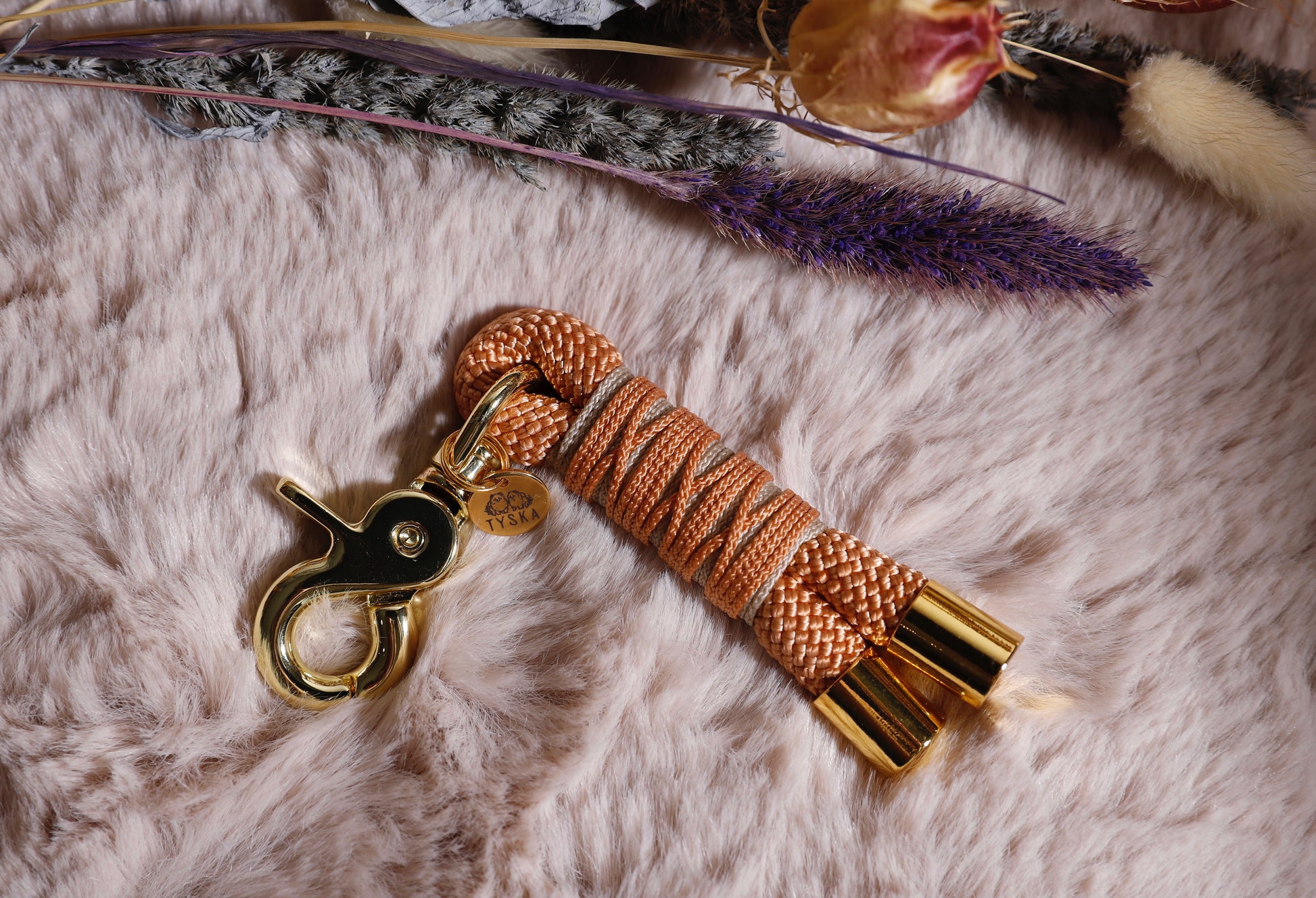 Porte-clé en corde. Différentes couleurs sont disponibles. Entretien : Le lavage à la main est fortement recommandé. Pas de sèche-linge.